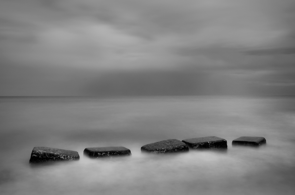 Molto zen. Mi piace. Più la osservo e più vago, vago nell'indefinito a nulla valgono le cinque concrete pietre, l'abbraccio liquido ed evanescente rapisce.