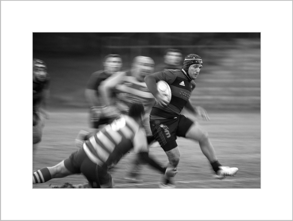 Questa la trovo meno riuscita di altre tue... vuoi per un panning non perfetto (anche se ammetto sia difficile in uno sport come il rugby) e per un taglio alla base che toglie dall'immagine elementi importanti ai fini di una visione globale (leggasi piedi ed avversario)