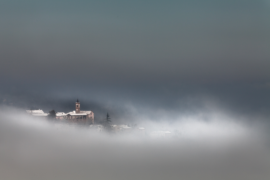 Non ci sono elementi di disturbo, tutto e equilibrato, l'atmosfera ovattata e natalizia c'è tutta e, anche se può non sembrarti, la composizione è perfetta e quel poco che si vede del paese, insieme al suo "nido", formano un tutt'uno (cosa che io chiamo massa compositiva) che è per me perfettamente equilibrato e piacevole all'interno del fotogramma.
