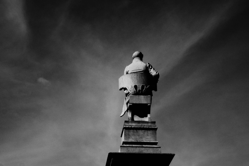 Una buona impressione, appena intaccata (per quanto mi riguarda) da un posizionamento né carne né pesce del soggetto: personalmente avrei trovato più efficace collocarlo al centro oppure decentrarlo con maggior determinazione. Ma a parte questo dettaglio trovo potente la resa solida della statua contro un cielo denso e ricco. Anche l'esserti tenuto ad una certa distanza dalla resa piena dei bianchi annette un cupo vigore all'insieme.
