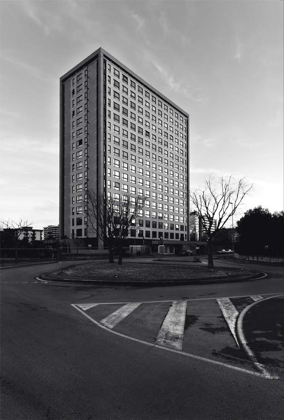 Un'altra immagine architettonica dal sapore preciso e rigoroso. Piace anche molto l'uso del primo piano col disegno sull'asfalto per dare il via alla struttura..  |