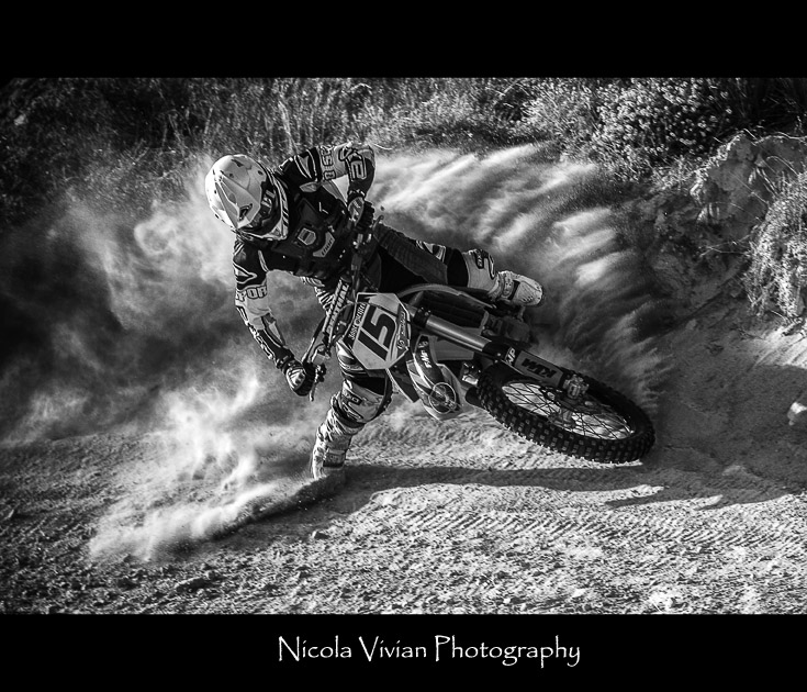 il ginocchio così piegato personalmente mi fa un pò "prendere" male Very Happy tecnicamente sarebbe più opportuno immortalare il pilota con la gamba completamente estesa e con la punta dello stivale rivolta verso l'alto! Anche io tendenzialmente non sono un amante del bianco/nero per le foto crossistiche, però vuoi per i contrasti sulla nuvola di polvere o cosa, in questo caso non mi dispiace! Ok!