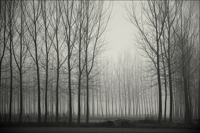 La fila vicina sembra muoversi, lasciando lo spazio al filare lontano: un silenzioso e malinconico movimento.
