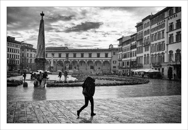 Scatto interessante per la contrapposizione della figura che si copre con la giacca mentre le persone sullo sfondo sono tutte ombrellate. il bn mi piace, ma sto osservando dal cellulare. Unica cosa avrei cercato di includere il riflesso in terra della figura centrale. _________________