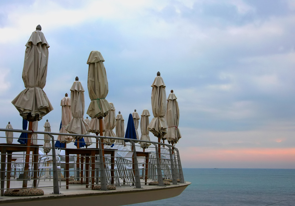 Bella foto! la stagione è finita ma....la terrazza che che si protende sul mare si rivolge a una futura stagione estiva che verrà. Mi piacciono sia i colori che l'inquadratura, unico piccolo neo quel filo che taglia l'angolo in basso a destra, comunque bella, un saluto Arturo  |