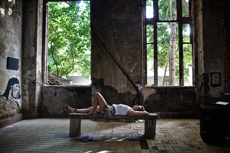 L'inquietante murales a sinistra è la ciliegina sulla torta.....quasi un'entità che osserva la ragazza distesa....