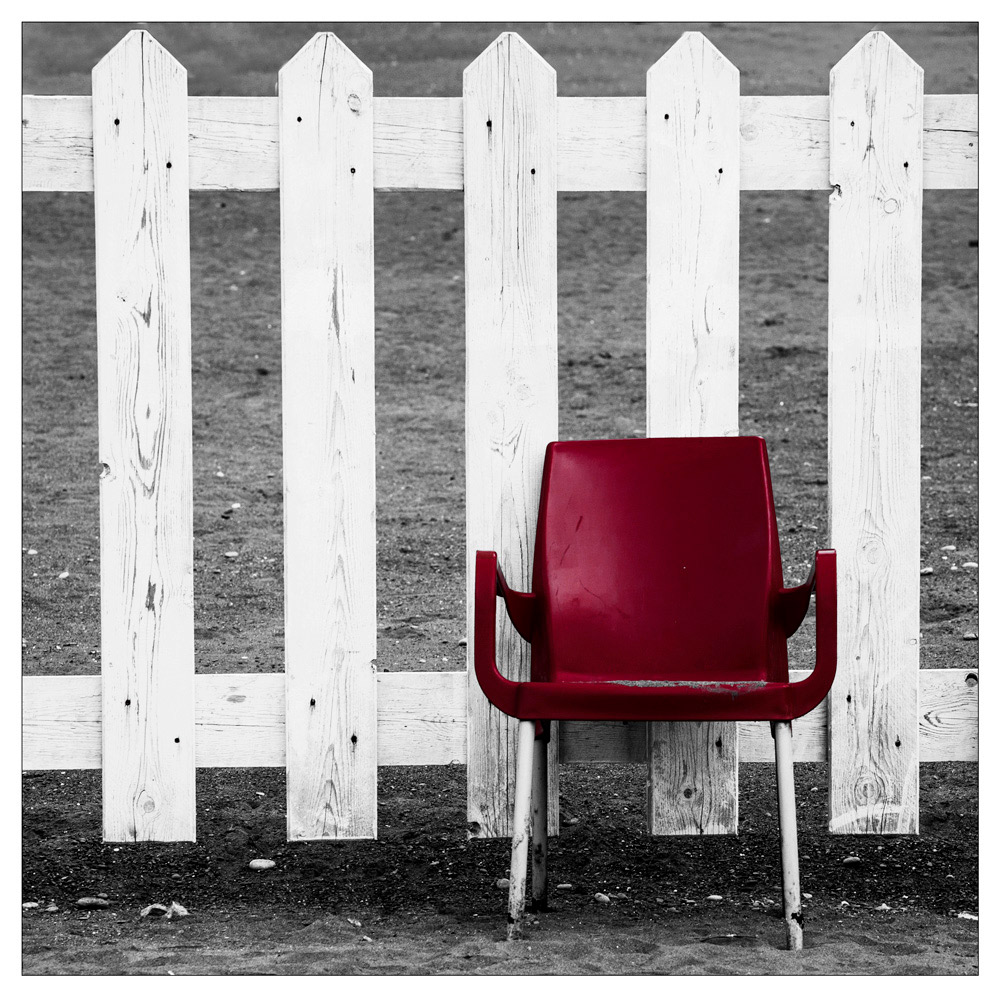 | La sedia di colore rosso ben si accoppia al bianco intenso della staccionata e gli elementi della scena sono ben integrati dal punto di vista estetico-cromatico...Si vede della sabbia...Percepisco armonia e la sedia rimanda ad una presenza umana forse in solitudine, che magari si é alzata e sta passeggiando/meditando davanti allo scorrere delle onde del mare...? Oppure rimanda ad una scena del passato...Ma basterebbe soltanto l'aspetto puramente estetico-minimalista a renderla piacevole e interessante... |