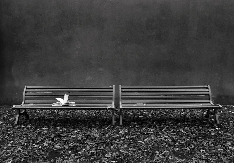 Non è tanto il taglio quadrato. Quello è solo un escamotage seguito a partire da una foto ormai scattata, per creare una tensione tra due elementi presenti nella scena: il libro e lo stacco tra le due panchine. Chi è soggetto? Il libro? lo stacco tra le panchine? Nessuno dei due perché non sai deciderti? Ecco, questo già crea un minimo di vibrazione che nella tua foto manca, perché un libro bianco su uno sfondo mediamente scuro è ovvio che è soggetto; perché è ovvio quel che vuol dire appoggiato sulla panchina; perché scattare simmetricamente è la prima cosa che viene in mente; ecc. Troppe ovvietà (il senso, la gestione dei toni, il soggetto, il modus fotografandi, ecc.) rendono una foto troppo immediata e quindi facilmente dimenticabile, anche se scattata con cura, cioè scolasticamente.