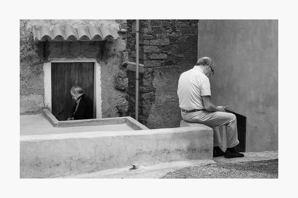 Belle le linee dei muretti che accompagnano lo sguardo verso le due persone.