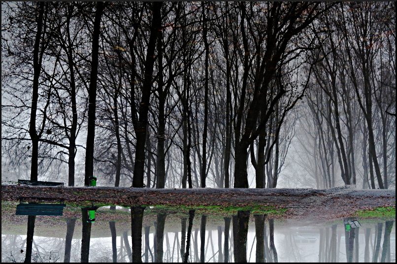 Il riflesso é cosí nitido che aver ribaltato la foto non credo faccia poi una grande differenza a livello di impatto visivo (nel senso che é necessario studiarla per qualche secondo per rendersene conto). Piú che altro a mio avviso risulta poco convincente l'inquadratura. O si stringeva di piú, fotografando solo il riflesso e l'argine, oppure, soluzione che personalmente preferisco, cercare di allontanarsi per riprendere una porzione maggiore della parte fuori dall'acqua, in modo da non mozzare cosí gli alberi vicino alla base. Non potendosi allontanare, si poteva forse optare per un'inquadratura perfettamente simmetrica, mettendo cioé l'argine al centro dell'inquadratura. Presentarla dritta o sottosopra, non cambia molto