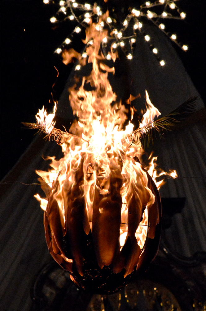 Pallone di bambagia che viene bruciato in occasione della festa del santo patrono.