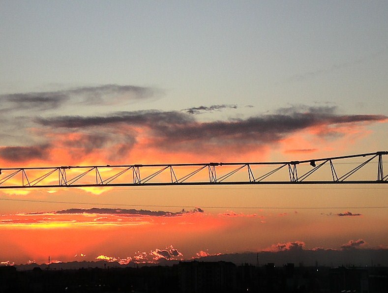 Non sarà poetica con quel braccio e quei cavi a rompere il cielo, ma certamente è un tramonto vero ed urbano.