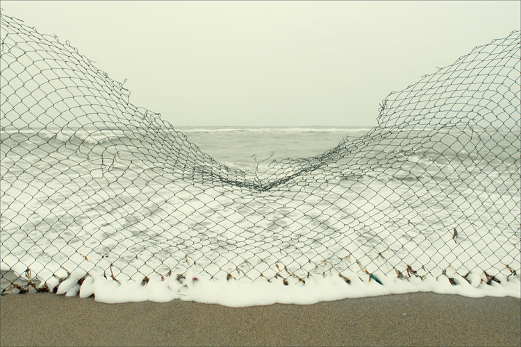 Dice bene Silvano si lascia guardare a lungo, hai creato una sorta di illusione ottica puntando il fuoco dove la rete si punta sul mare tanto che sembra toccarlo....perchè la rete dove si piega non tocca l'acqua...giusto?!