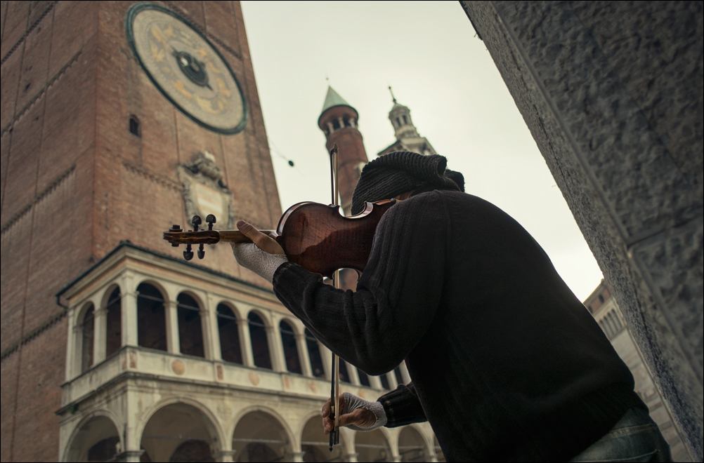 Pio, conoscendoti fotograficamente, dó per scontato che la sovrapposizione tra la testa del violinista ed i campanili sullo sfondo non sia casuale o frutto di disattenzione, peró proprio non riesco a farmela piacere....
