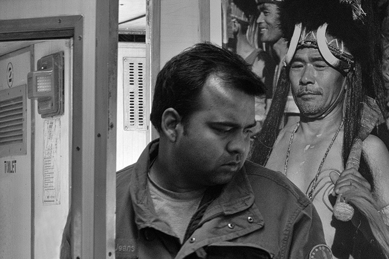 Interessante la dinamica dell'immagine dove il soggetto in pp pare preoccupato della imponente presenza alle spalle, ma la tensione si esaurisce salendo, nel sorriso della figura in alto e di profilo. Molto bella. Complimenti.