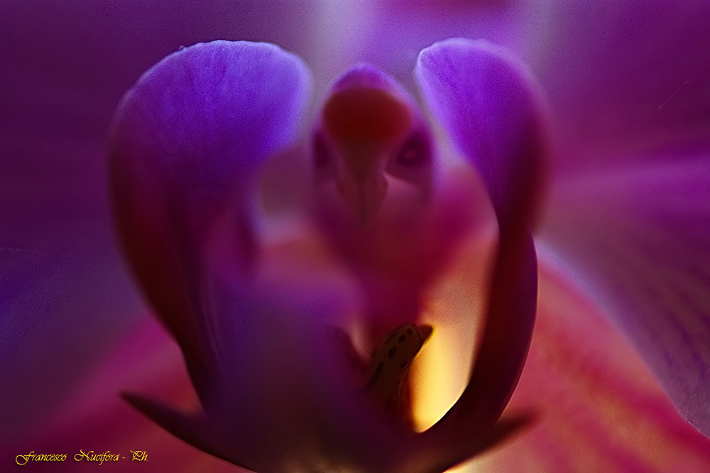 Ciao, probabilmente un'orchidea...ma potrei sbagliarmi, comunque hai azzeccato un buon punto di ripresa, ed una distanza minima che ha assolto bene il compito di rivelare poco dettaglio ma confonderne, funzionalmente, altri, rendendo questa ripresa interessante e lasciando aperta la fantasia....unico neo, secondo il mio punto di vista, la presenza di rumore, oppure cosa altro sia, che crea quegli artefatti presenti in maniera maggiore sulla parte alta del fiore...iso usati? lunghezza focale?, diaframma...? Una interessante fotografia, arrisentirci presto.