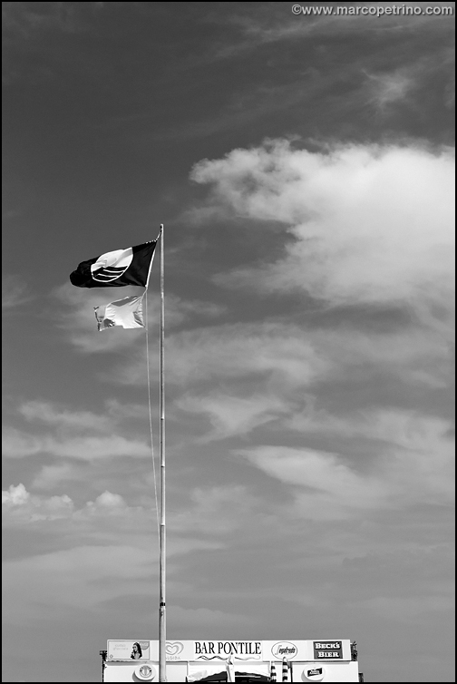 Mentre la osservavo mi sono accorto di essermi assentato per qualche attimo... nella bandiera ho visto la legione straniera, nel bar pontile la parte superiore di un fortino e quel cielo mi ha ricordato il caldo sole del deserto... fortuna che non siamo in estate altrimenti avrei pensato ad un colpo di calore...