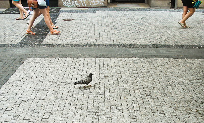 Ti proporrei una adeguata maschera di contrasto per esaltare la trama del pavimento e il piccione.