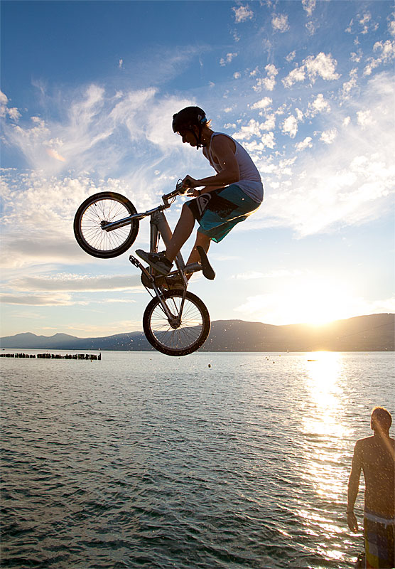 Bello e dinamico il momento colto,avrei forse escluso la persona a terra,puntando su un effetto piu' surreale della scena.Ben gestito il contro luce.
