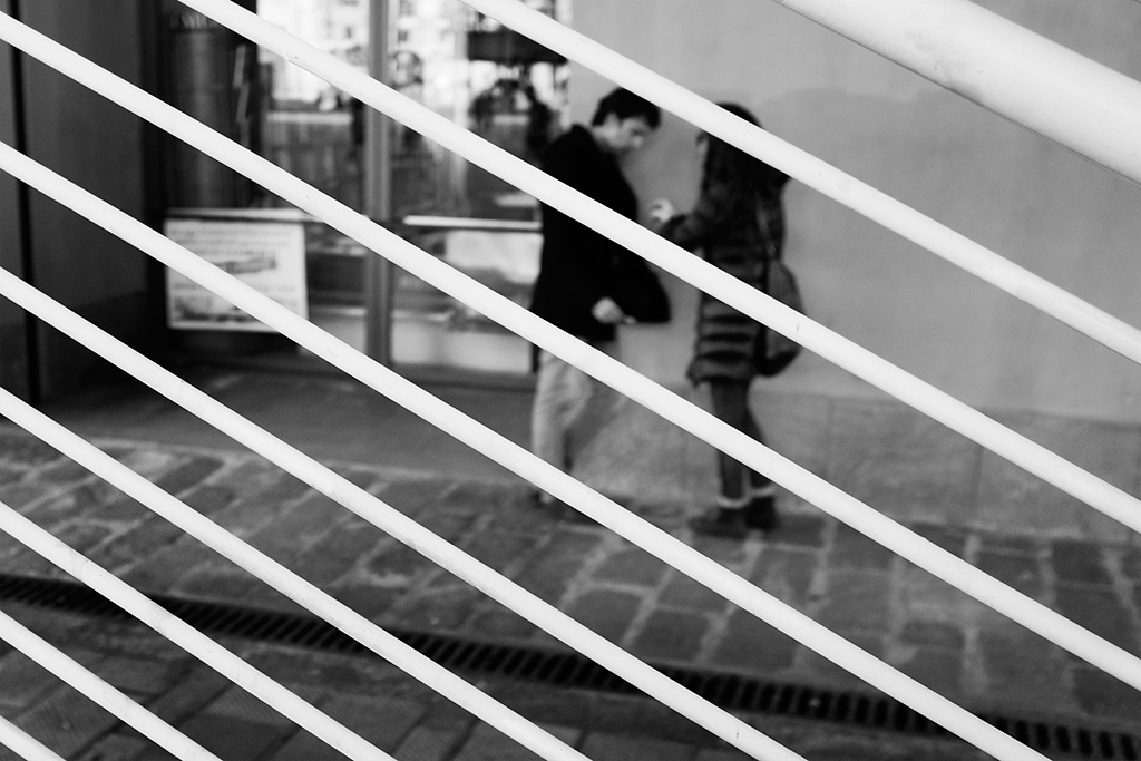 bello questo gioco di linee dal primo piano da cui scorge la scena che si svolge poco distante