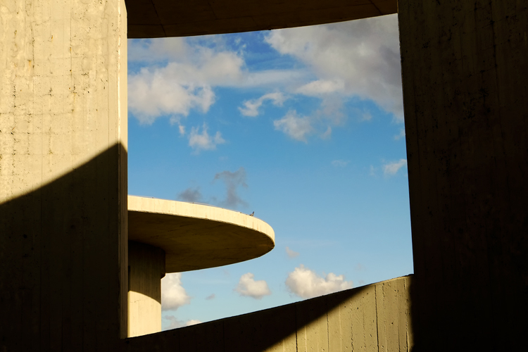 Devo dire che stavolta non sono d'accordo con Diego (eh, doveva capitare, prima o poi Smile ). Il gioco di piani, di chiaroscuri, di ombre qui trova un senso compiuto (secondo me) con gli equilibri proposti dall'autore. Compresa perfino quella mancanza di perpendicolarità della parete di destra che aggiunge una dinamica che appare funzionale in una composizione che sfrutta - sì - elementi architettonici però per proporli dopotutto quasi come un astratto. In questo senso l'unica stonatura semmai la ravvedo nella presenza del pur minuscolo piccione.
