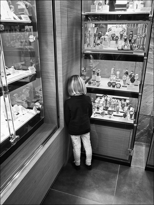 @Antonino: è stata questione di un attimo, ero con la famiglia in questo negozio di oreficeria e mentre si guardavano le vetrine questa bimba era intenta a fare i capricci.... sono riuscito fare uno scatto de panza (mosso) e questo puntato.