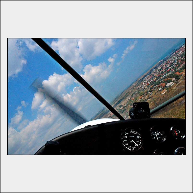 Non sò se voluto o meno, ma tenere la fotocamera in bolla con il cruscotto riesce a trasmettere (se mai c'è ne fosse bisogno) la dinamicità e le strambe traiettorie che si vivono all'interno di un'aereo con queste proporzioni.