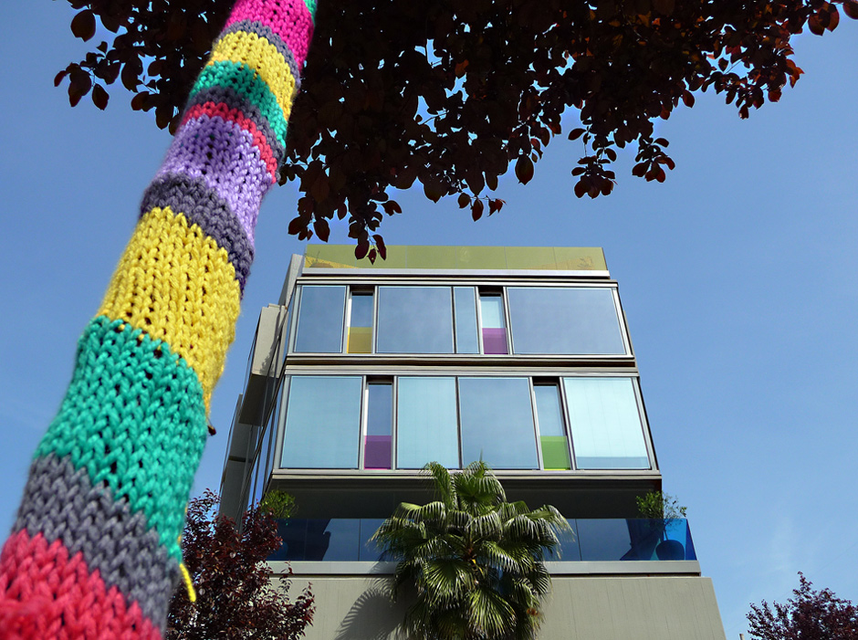 Ero andata per fotografare in maniera rigorosa, ma poi ho visto l’albero con la “tutina” di maglia e non ho resistito…