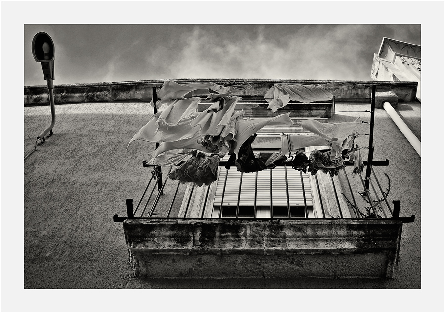 Concordo con Alessandro sulla debolezza causata dal poco stacco tra i panni, protagonisti primi dello scatto, e lo sfondo, come pure sull'efficacia del ben progettato impianto compositivo della foto.