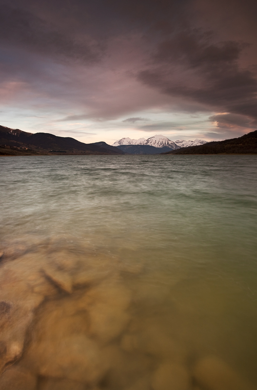 Una personale piccola perplessità per la ampia porzione di spazio riservata alla base acquea nella parte sassosa, che avrei leggermente ridotto. Ma il regalo visivo della cima innevata è davvero splendente.