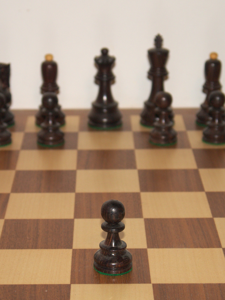 Ora ti dò il mio giudizio da profano. Avresti dovuto cambiare punto di ripresa (pdr) abbassandoti in modo che il pedone essendo il protagonista fosse in primo piano enfatizzando lo sfocato dietro, facendo in modo che la testa del pedone fosse alla stessa altezza della base dei pezzi dietro o almeno più vicini, mantenendo nel contempo la veduta della scacchiera.