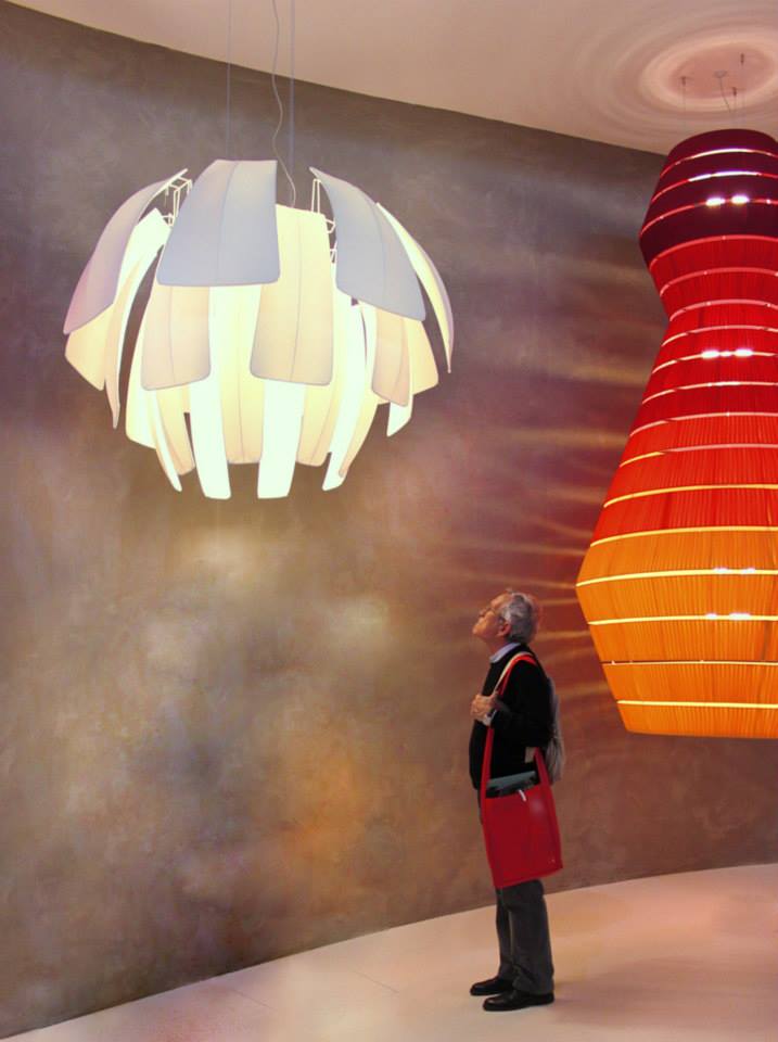 Onirica come atmosfera ed al contempo surreale per le grandi misure dei lampadari che rendono lillipuziana la persona.