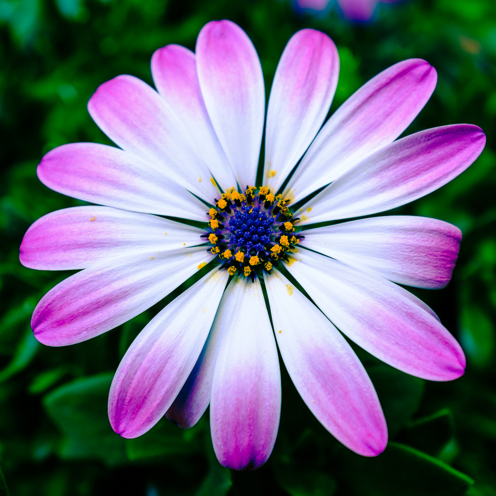 Divido idealmente la dimorphoteca (ne ho tanto sul terrazzo e facci esperimenti fotografici) in 3 parti : centro, zona bianca e punte rosa dei petali.