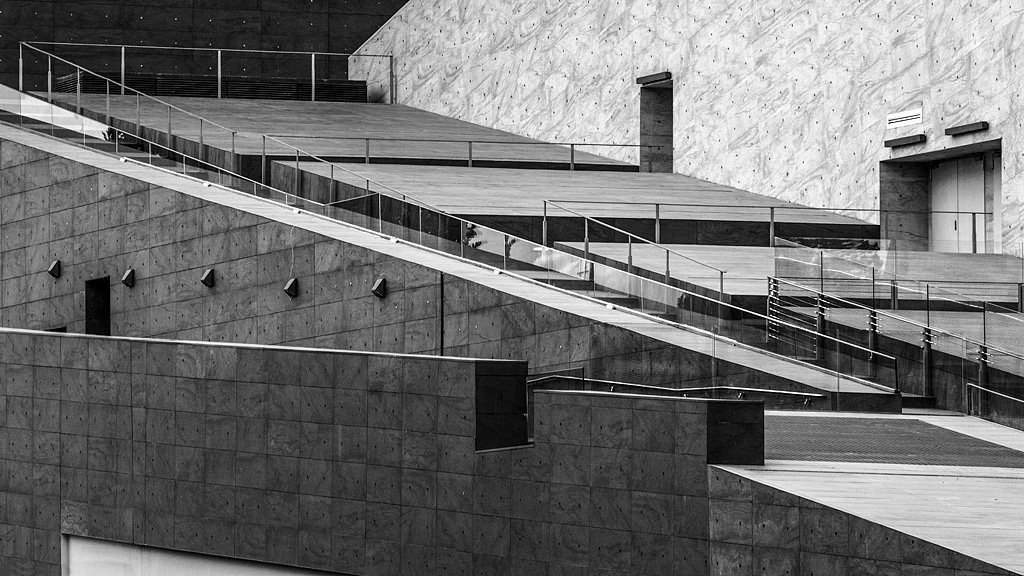 Io penso che a questa foto manca un punto di arrivo ed è per quello che chi la guarda si trova sconcertato....tutto ti spinge da dx verso sx e già questa cosa è innaturale x via del modo in cui scriviamo o leggiamo abitualmente,ma in fondo cosa ti trovi?una balaustra e una parete nera allora la ripercorri cercando ma è inutile....ti devono piacere solo le linee e le geometrie, tt qui.