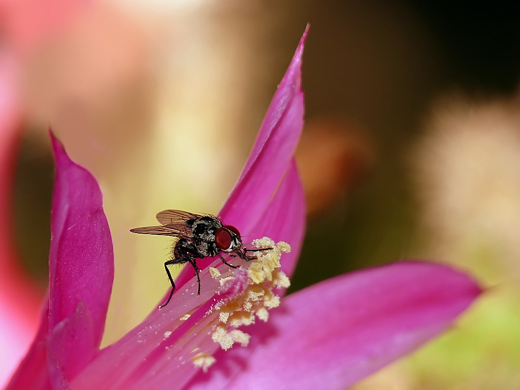 Piacevole fotografia Kampes, punto forte i colori intensi ed accattivanti...ben ripresa anche la mosca, e bello lo sfondo...bravo. Buona serata.