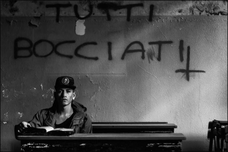 In effetti ho avuto un attimo di imbarazzo nello scegliere la sezione, dal mio punto di vista Ivan non è il soggetto della foto,il fulcro dell'immagine sta nei vari simbolismi,' il legame tra la scritta sul muro ,il libro e lo studente ,il grafito satanista, la generazione che convive con tutto ciò e la panacea di tutti i mali : " tutti bocciati " . Forse tutto questo non passa e per questo non è stata notata.
