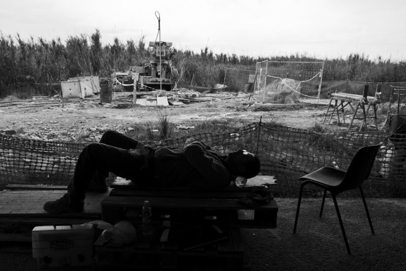 La scena è molto interessante e ben composta ma, mi perdonerai, forse hai avuto qualche problema con la luce. Probabilmente sbaglio ma, qui il soggetto principale, come suggerito anche dal titolo è il capocantiere. Tu hai esposto correttamente per la scena dietro ma, inevitabilmente hai dovuto sotto esporre la persona che si trovava all'ombra. In questo modo il mio sguardo si è rivolto prima allo sfondo e solo alla fine all'uomo sdraiato e non riesce a restarci a sufficienza a causa dei particolari coperti dalle ombre tornando inevitabilmente dietro dove la scena è più luminosa e più ricca di dettagli.