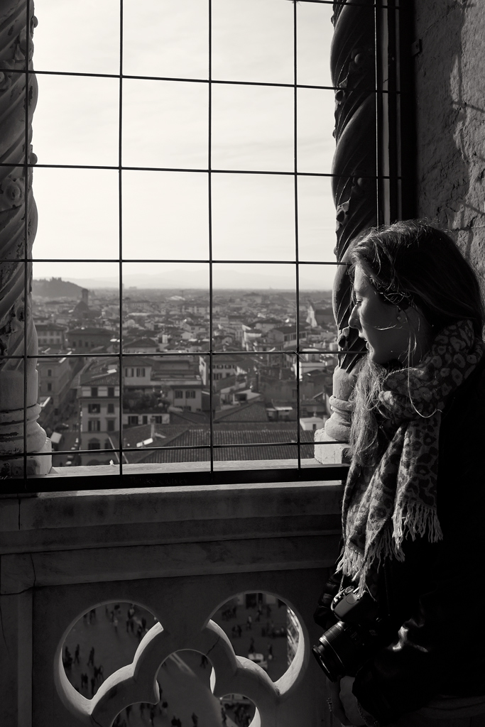 È un ritratto ambientato di una compagna di viaggio? Perlomeno a questo fa pensare. Ma se anche fosse un "ritratto rubato" ad una ignara turista le cose non cambiano: il soggetto non è ripreso in un atteggiamento (del volto) felice, la bocca semiaperta, gli occhi semichiusi, ed inoltre il profilo è disturbatissimo dal complesso elemento architettonico che le giace dietro.