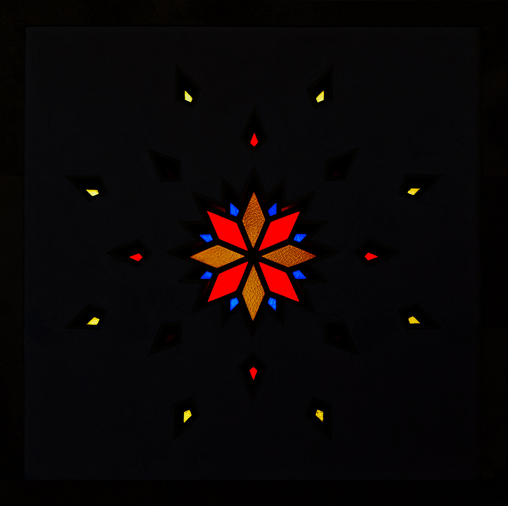 quando vidi la vetrata..sono stato buoni 15 minuti a guardarla per capire come centrarla bene..eppoi clack..il fondo della chiesa era uno schifo quindi ho fatto tutto nero per giocare con l'effetto 3D dei colori primari;))