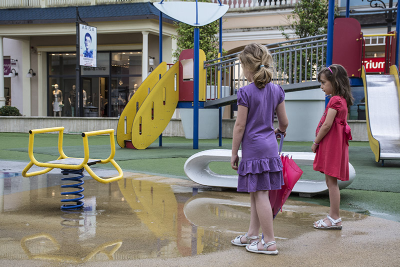 Quel piede in avanti della bambina in primo piano come a saggiare la possibilità di raggiungere il gioco nonostante la pozza e lo sguardo dell'altra dicono molto.