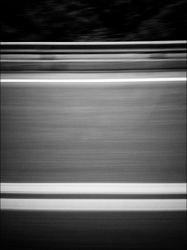 Interessante immagine,il punto di ripresa in movimento crea un piacevole grafismo,ottimo il bn quasi una tabella di scala di grigi.Complimenti! Smile