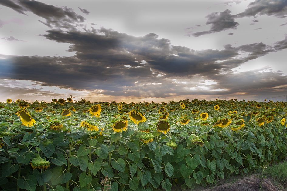 L'angolino di terra in basso a destra poco aggiunge e si poteva anche non includere. Non capisco il riflesso blu sul lato sx a metà altezza. Avrei visto bene un taglio panoramico rimuovendo la parte bassa appena sotto i primi girasoli. Impressioni del tutto personali ovviamente. Un gradevole paesaggio
