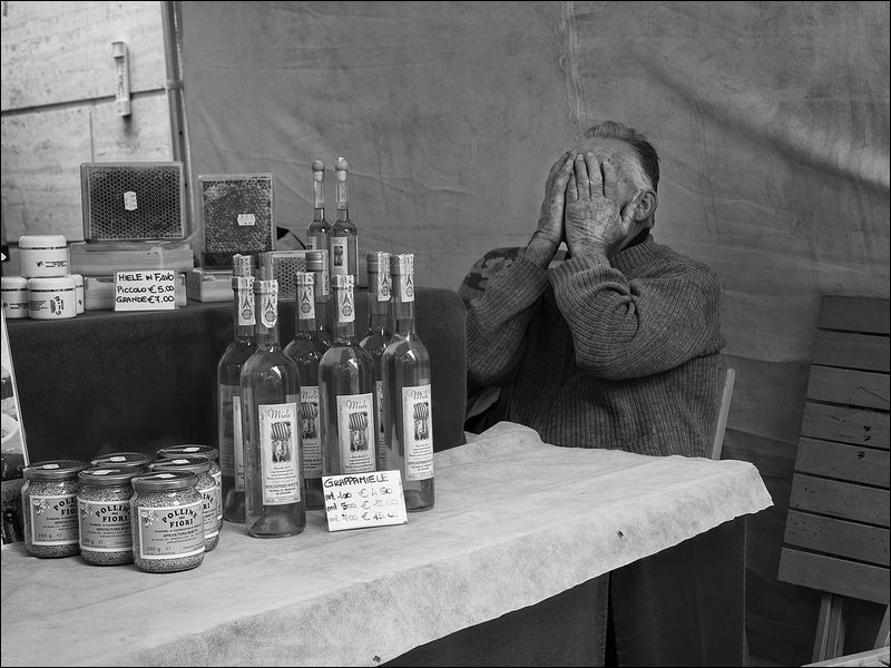 Ha sbagliato sagra ed ha piazzato il banchetto in quella degli astemi! Ottimo scatto,bello anche il bn!  |