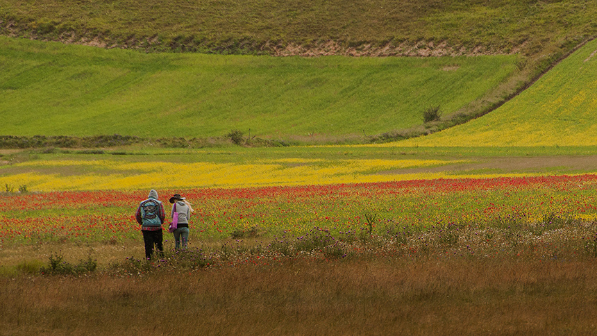 L'immagine è efficacemente composta, le figure umane, decentrate a sx con relativo spazio vuoto verso il sentiero e la loro direzione di marcia, creano un piacevole dinamismo. Belli anche i colori, anche se un po' di brillantezza in più avrebbe giovato al risultato finale.