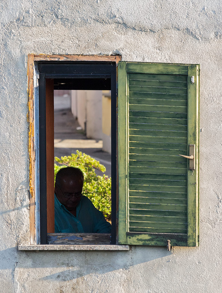 Qui siamo sulla riva di un canale sulla riva del quale si affaccia questa striscia urbana che si apre da una parte e dall'altra creando questo interessante gioco di "sguardo attraverso". L'uomo nel "frame dentro il frame" non mi ha regalato complicità ma mi è piaciuta cmq la sua posa rilassata e sonnecchiosa in una calda serata d'estate