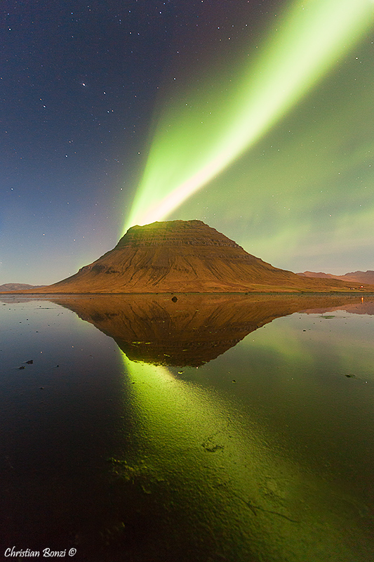 Mi incuriosiva il fatto che non ci fosse neve e ghiaggio, quindi considerando il clima dell'islanda dovremmo essere tra giugno ed agosto, mi meravigliava quindi vedere questa aurora. Vediamo che dice l'autore. Smile
