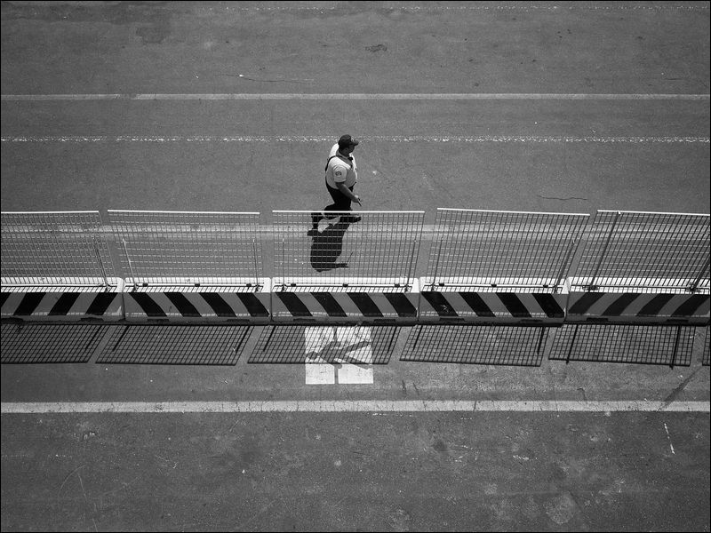 Una foto che come molte street mi ha dato solo una possibilità: ho visto il vigilante che andava nel senso inverso ma ormai era già passato, ho sperato che ripassasse e così ha fatto, ma per un solo click.
