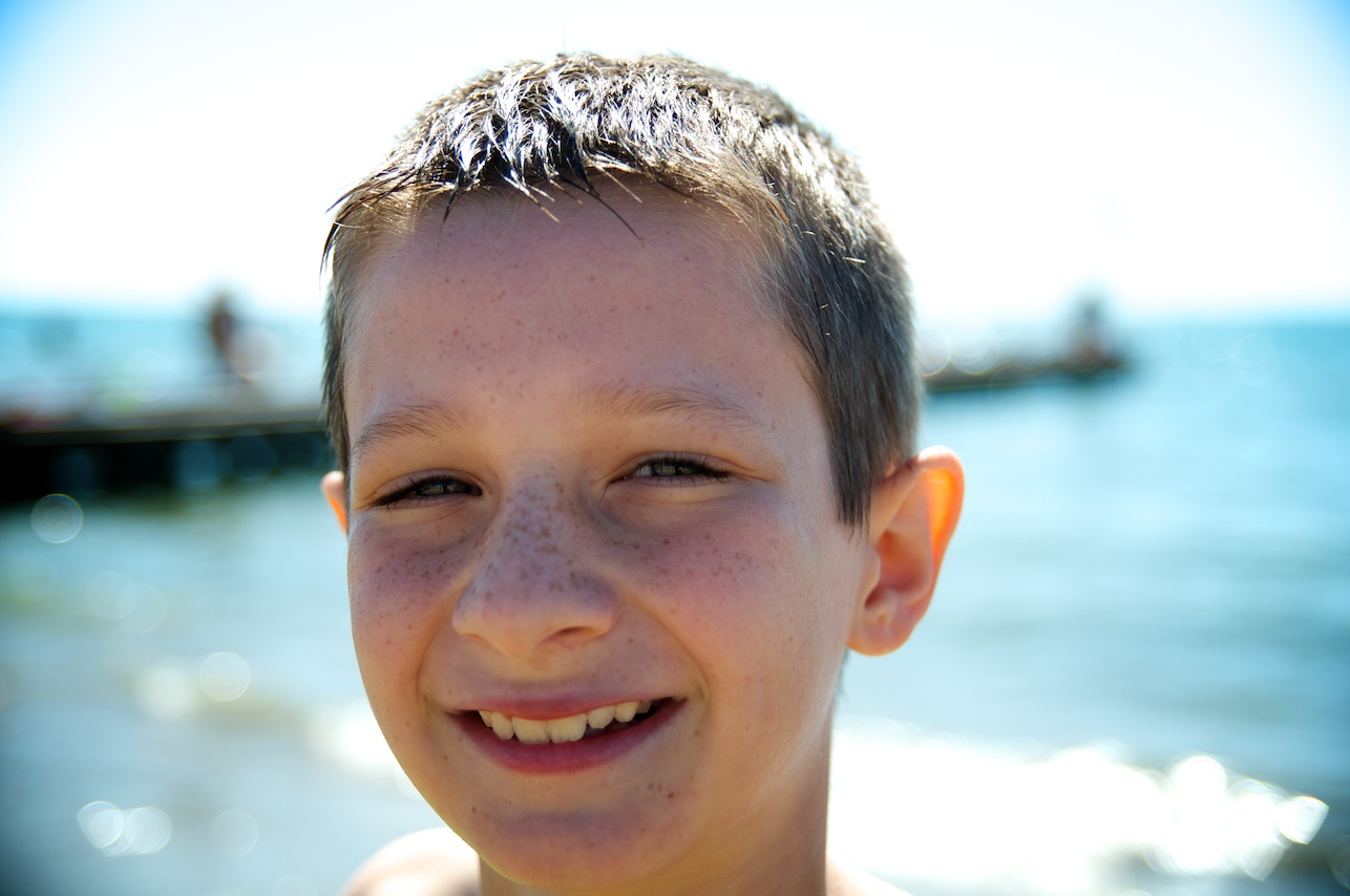 La prima cosa che arriva è il "nasone" cioè non è che lui abbia il nasone ma con l'ottica che hai usato, troppo corta per i primi piani, si sono introdotte delle deformazioni prospettiche che evidenziano molto il naso, la posizione è, per i miei gusti, troppo centrale, l'abitudine a mettere a fuoco con il punto centrale , e troppo in primo piano e il mento sfiora il bordo inferiore, nello scatto non hai curato abbastanza lo sfondo con il risultato che quel pontile pare attraversare la testa del soggetto. L'esposizione forse è un pelino generosa il che ti rende difficile recuperare in post quelle bruciature sui capelli. |