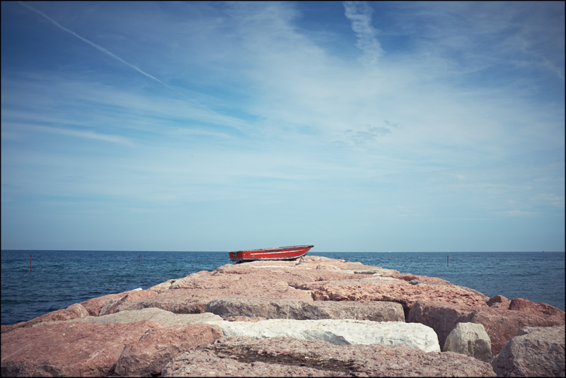 Ho provato ad abbassarmi, ma non sono riuscito a non mettere l'orizzonte sul terzo orizzontale inferiore, quindi la barca mi è venuta lì... Sono convinto della scelta fatta? Insomma...