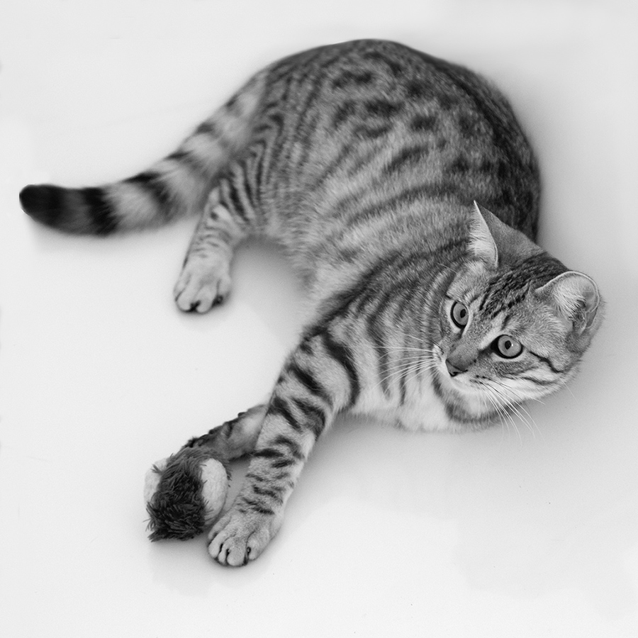 Ti dico subito che preferisco la seconda versione, con un atteggiamento più vigile e gattesco reso anche attraverso un b/n meglio articolato e vivace. Nella prima c'è un basso contrasto che suggerisce una resa più morbida ma addormenta un po' il felino.